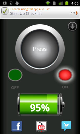 Uses the camera flash in a constant on position for a fast and great flashlight.The only Flashlight app with a large battery display It instantly turns your Phone into a real flashlight to illuminate your path so that you can open the door, or find your keys in your bag.Uses the camera flash in a constant on position for a fast and great flashlight. As bright as bright can be and as fast as fast can be.Very easy to use and FAST to load. Hit the icon and the flashlight is on. There is a button on the screen to turn on and off so you don39;t need to exit the APP.The app displays the available battery life of your device at all timesSp your phone by your bed for instant light in the middle of the night No more stubbing your toesTry it now and see for yourself ...