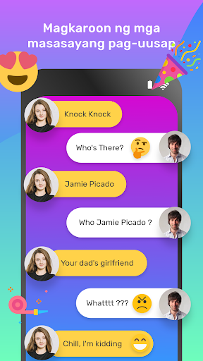 😍Get the best of Chatting and Dating: Ang aming makabagong random chat at live talk app ay nagtatampok ng isang tonelada ng masaya at kapana-panabik na paglalaro ng papel sa teksto kung paano magsimula ng isang pag-uusap at matagumpay na makumpleto ang hindi nagpapakilalang chat at estranghero chat. Tingnan mo ang iyong sarili kung bakit ang Random Chat at Kilalanin ang mga bagong Tao ay ang iyong hindi nagpapakilalang chat room na pakikipag-date ng app para sa estranghero chat.