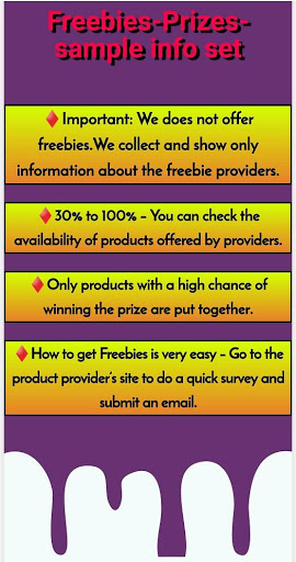 1.Ang app ay nagpapaalam sa iyo tungkol sa Freebie at Sample Provider.