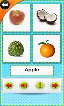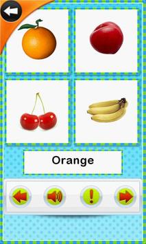 - After teaching about the Fruits and Vegetables, there is a test mode also to see their knowledge and it's really fun and boost their memory also with the real pictures.
