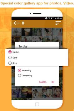 Sort by Name, Sorting by Date, Size wise Sorting, Ascending/Descending Sorting photo grid.