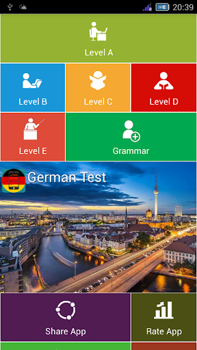 - “German Test”: A great number of German Practice Tests, is an application with more than 12.000 multiple choice exercises for all learning levels in German. These exercises should help you to improve your knowledge German grammar (Deutsche grammatik and Deutsch fremdsprache):
