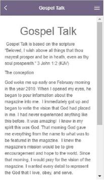 Download the exclusive new Gospel Talk mobile app! App Features: Gospel Talk Live Bible Push Notifications Social Wall and much more!