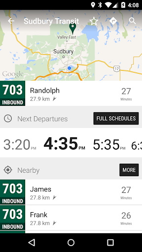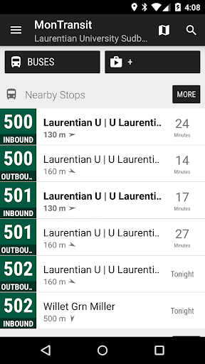 Ang app na ito ay nagbibigay ng nakaplanong iskedyul pati na rin ang data ng real time transit mula sa lungsod ng Greater Sudbury MyBus API.