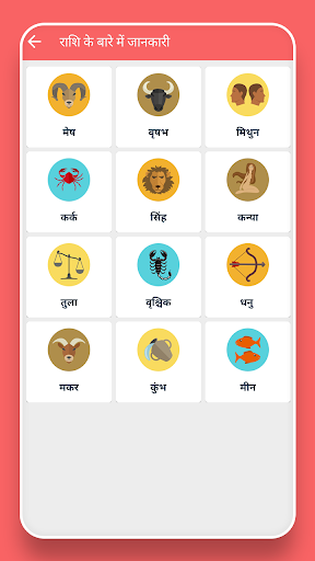 Maaari mo ring suriin ang pag -sign ng lahat ng 12 zodiacs.Narito ang listahan ng mga palatandaan ng zodiac: Mesh (Aries), Vrush (Taurus), Mithun (Gemini), Kark (Kanser), Singh (Leo), Kanya (Virgo), Tula (Libra), Vrshchik (Scorpio), Dhanu (Saggitarius), Makar (Capricorn), Kumbh (Aquarius) at Meen (Pisces)