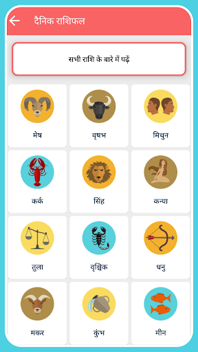 Pang -araw -araw na Hindi 2023 Rashifal App ay nagbibigay ng kumpletong mga detalye para sa pang -araw -araw na horoscope (Dainik Rasiphal), lingguhang horoscope (Safthahik Rasifal), buwanang horoscope (Maasik rasifal), Varshik rashifal (Bagong Taon Horoscope).Sa ganitong 'pang -araw -araw na hindi horoscope' app ang mga detalye ay ibinigay batay sa Hindi astrolohiya at horoscope sa Hindi.