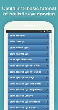 On this app contain several instructions about how to draw realistic eye step by step easy for kids and adults. Tutorials made easy with illustration pictures. What are tutorial how to draw realistic eye included on this app? They are: