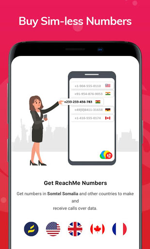 Buy virtual numbers from Somtel Somalia, USA, UK, Canada or France, and make/ receive affordable calls in the app.