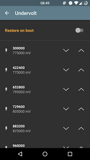 • CPU: maximum/minimum frequency, maximum/minimum screen off;
