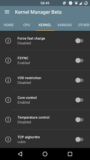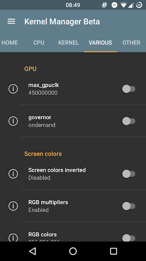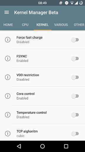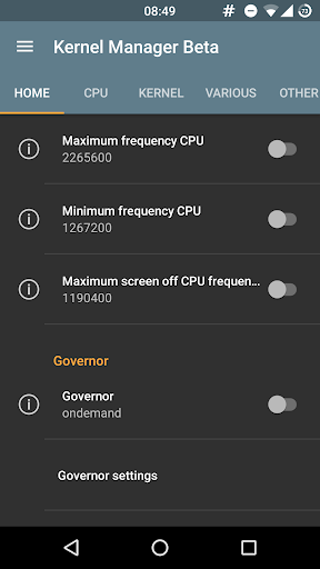 Kernel Manager Diamond Edition is an application for managing the kernel settings. It provides to the users the possibility of control all the main aspects that regulate the operation of the kernel. You're able to add manually the controls that aren't natively available in the program across the screen "Custom Controls" (Other).