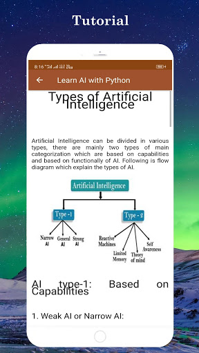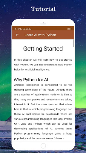 Kung naghahanap ka para sa isang application upang matuto ng AI sa Python programming language basic upang mag-advance nang walang anumang kaalaman sa programming. Ikaw ay nasa tamang lugar. Kung ikaw ay isang nakaranas ng programmer o hindi, ang application na ito ay inilaan para sa lahat na nais malaman ang AI sa Python programming language.
