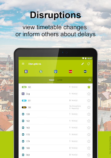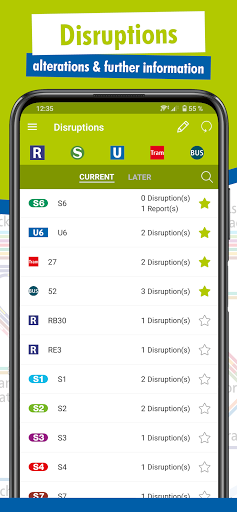 • Mga Pagkagambala: Sa isang sulyap, makakakita ka ng mga pagkagambala na maaaring makaapekto sa iyong pang-araw-araw na pag-order ng mga linya at ang kanilang mga pangalan ng operasyon. Gayunman, ang mga paglalarawan ng mga pagbabago sa timetable ay magagamit lamang sa Aleman.