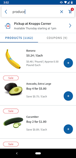 - Upang makapagsimula piliin ang pickup o paghahatid mula sa iyong home screen at gamitin ang iyong personalized na mga listahan ng produkto upang simulan ang pagbuo ng iyong cart .