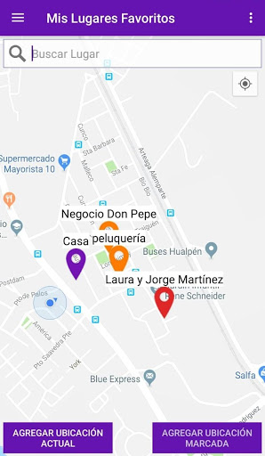 Sa search bar maaari kang maghanap para sa isang 'lugar' o 'address' na Ay pagpuntirya sa isang itim na marker, sa susunod na magagawang i-save.