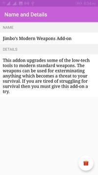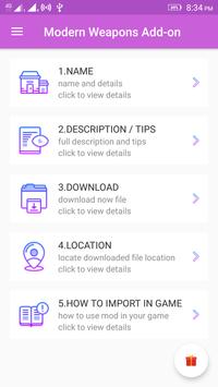 add on for mcpe, add on for mcpe, modern weapons addon for minecraft pe. This app work in offline mode. thanks for support if you have any query about app improvement please kindly mail us on mcpemodstudio.in@gmail.com