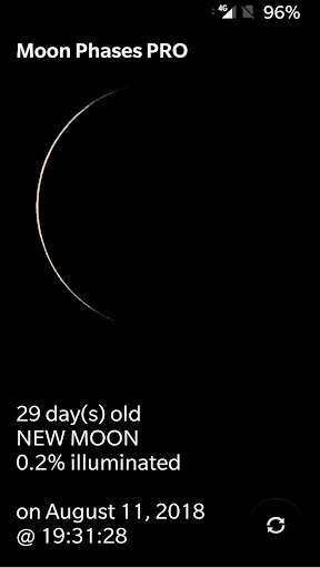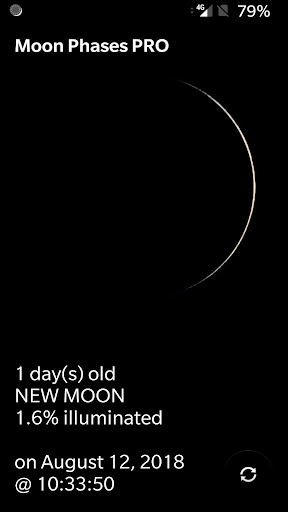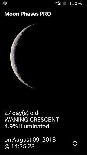 Ang impormasyon ng real-time na buwan tulad ng edad, yugto, at porsyento ng pag-iilaw ...