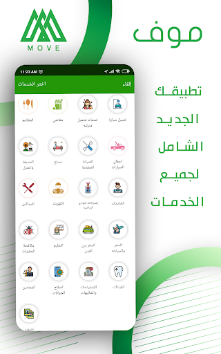 MOVE is a lifestyle application that you can fully rely on in many aspects of life as this application has provided you with all the basics of daily life and more, so you can request the following: booking a car, tourism services, eating, shopping, pharmacy, light and heavy transport services, car services, services Cosmetics, home services, hourly maids, maintenance of mobile phones and devices and much that is not sufficient for writing space to explain.