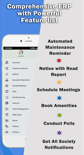 Ang kapitbahay ay tinutuya ang mga problemang kinakaharap ng mga miyembro ng komite ng pamamahala ng Housing Society at sa ibaba ay ilan sa mga tampok ng kapitbahay (Comprehensive Housing Societies Management App):