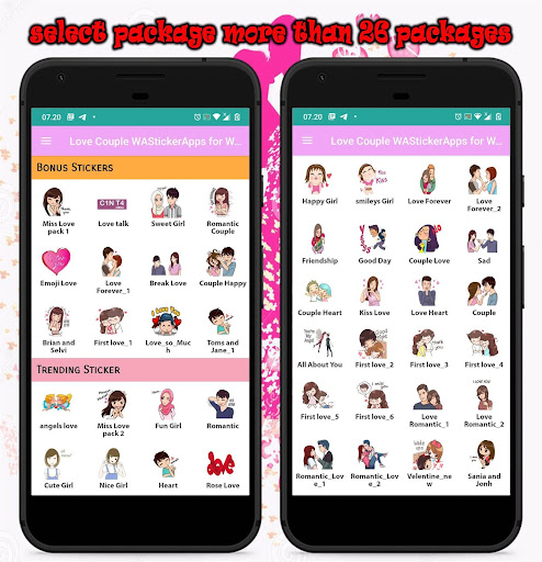 ♥♥♥ Araw ng mga Puso ay lumipas na, ngunit upang ipahayag ang iyong pag-ibig hindi lamang sa Araw ng mga Puso, ngayon ay may isang bagong pag-ibig ng mag-asawa na Wasticker para sa Whatsapp application sticker application na tumutugma sa WhatsApp Messenger, ay maaaring gamitin para sa Android o smart phone. Kumakain ang iyong sarili sa mga mahilig o mga taong pinapahalagahan mo ang buong romantikong may koleksyon ng mga tema miss, love, cute, halik, malungkot, masaya, rosas, smiley, bulaklak, puso, magaling na babae, emoji Love, bigmoji, good day, valentine, break love, couple love, couple heart, love heart, love forever, friendship and marami pa.