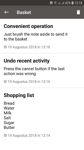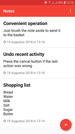 Convenient management of your notes, to delete a note, just swipe it aside