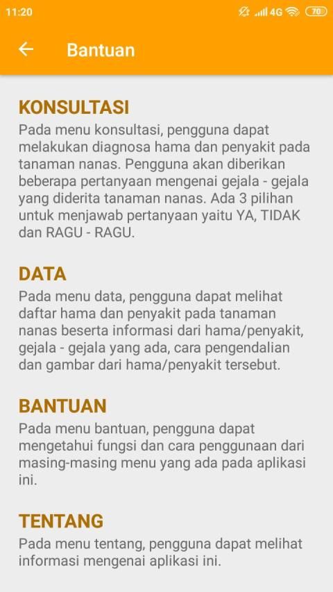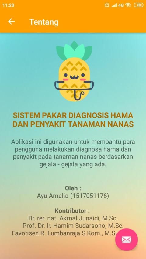 Aplikasi ini digunakan untuk membantu para pengguna melakukan diagnosa hama dan penyakit pada tanaman nanas berdasarkan gejala - gejala yang ada.