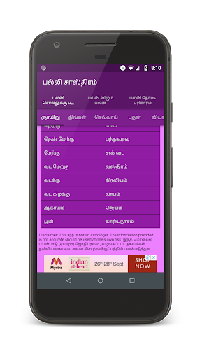 Tamil Android application.Magkaroon ng palli tunog astrolohiya at mga remedyo.