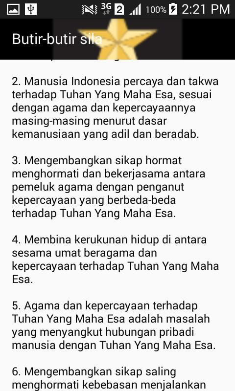 Pada aplikasi ini akan ditunjukan kelima prinsip dan ke 45 butir pancasila.