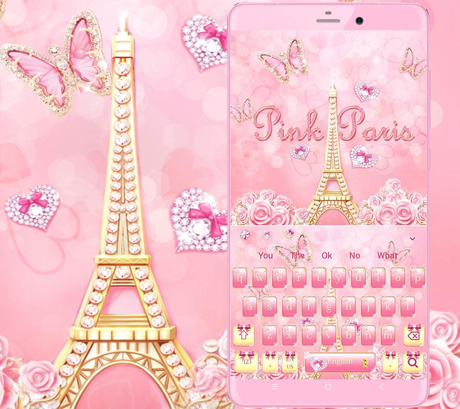 Luxury pink gold paris theme for keyboard with pink roses flower, pink diamond, and luxury diamond paris eiffel tower free for you . Get pink rose paris keyboard theme for your girlish pink android keyboard free.