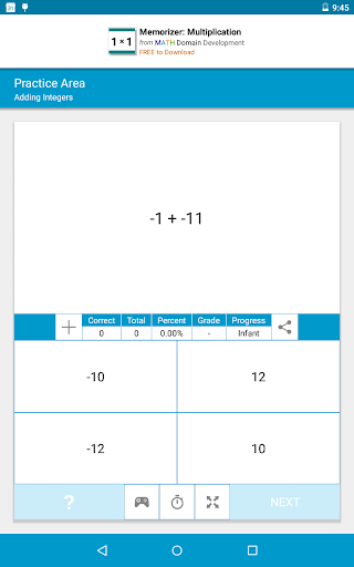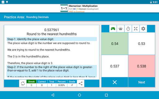 is the place to improve problem solving accuracy and speed. There are an unlimited number of randomly generated multiple choice problems. Step by step solutions are available for each problem after the question is answered. You can set your fastest average times or your longest streaks of correct answers for many topics and can post your results to the Leaderboards.