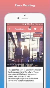 Questions To Ask Your Girlfriend is an informational app which can help you overcome the problems that people face while approaching a girl and ask her.