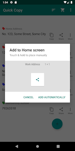 'Quick Copy' app helps in copy and paste of frequently used text, sharing of image, in just one tap. This way you don't have to open multiple applications to get different text/image.