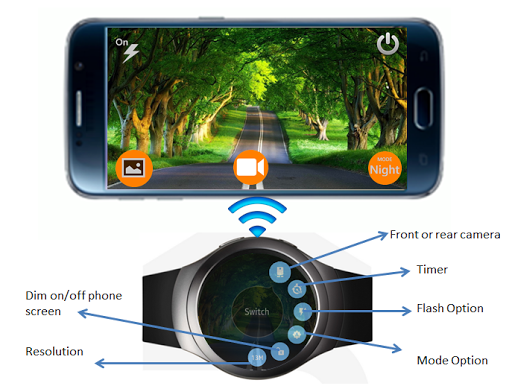 - Setting options for camera from gear: Mode, Flash, Timer, Dim off Screen... more and more