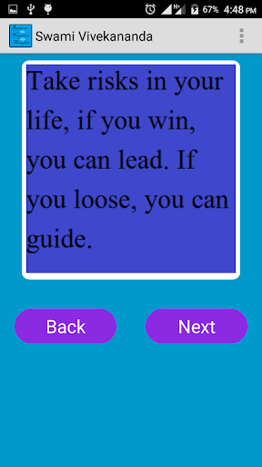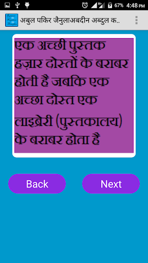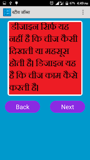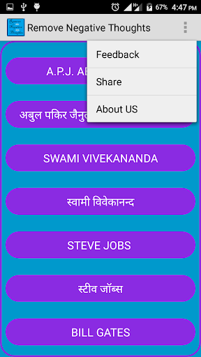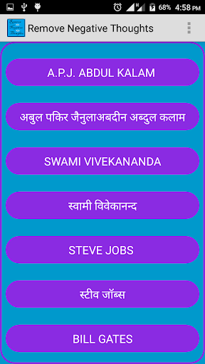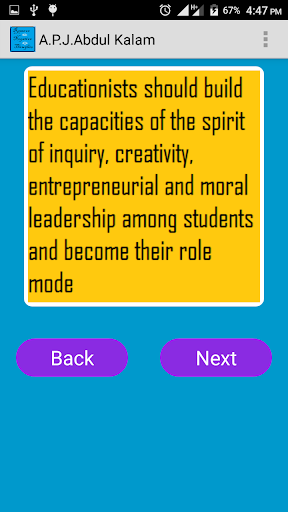 Ang application na ito ay kapaki-pakinabang upang malaman ang mahalagang mga quote ng Apjabdul Kalam, Swami Vivekananda, Steve Jobs at Bill Gates.