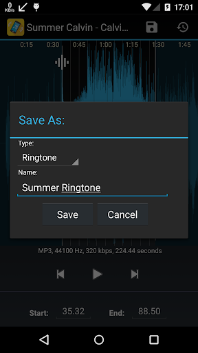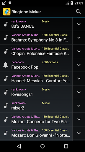- I-save ang iyong mga file na audio bilang musika, ringtone, alarma, o abiso.