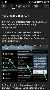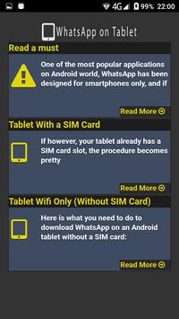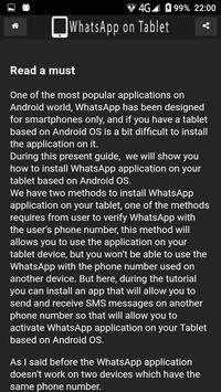 Learn how to install WhatsApp on your tablet. Knowing that WhatsApp is not supported by the tablet, but you can always bypass this restriction, the Run whatsapp application on android tablet is a guide to installing the WhatsApp on your tablet. Easily, just follow the instructions of how to install WhatsApp messenger on the tablet supported on all Android tablets such as: Samsung Galaxy Tab, Lenovo Tablet Yoga, Lenovo IdeaTab, Google nexus etc ...., NVIDIA, ASUS MeMO Run whatsapp on android tablet for Installation WhatsApp messenger will help you stay connected, regardless of the type of device