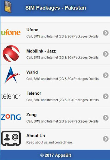 Ang application ay puno ng lahat ng mga uri ng mga pakete na nais mong tingnan kapag sa paghahanap ng tamang pakete para sa iyong handset. Kung ikaw ay isang jazz, telenor, warid, ufone, o zong user, ang kailangan mo lang gawin ay i-download lamang ang aming application at ipasok mo sa isang mundo kung saan alam ang lahat tungkol sa iyong carrier ng network ay madaling!