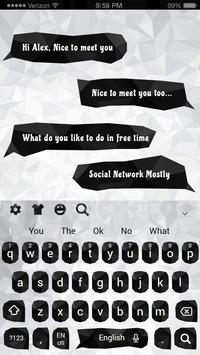 : Amazing SMS Black and White Crystal Keyboard, cool chatting sms keyboard theme, abstract geometric keyboard theme or black and white crystal polygon keyboard theme or 2018 new keyboard themes, etc. Just choose what you love.