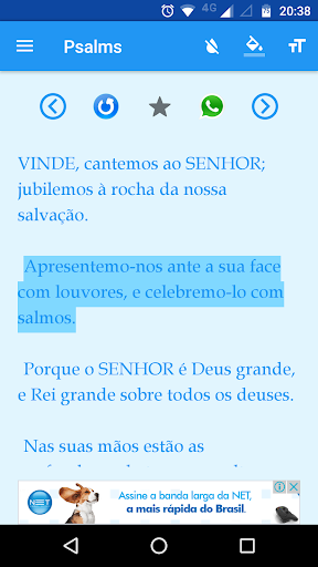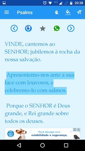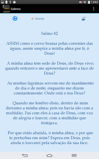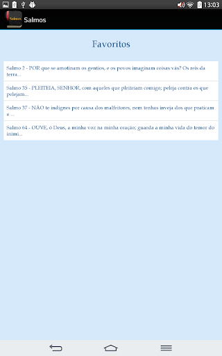 Ang app na ito ay para sa iyo na gustong buksan ang Biblia nang hindi pinili ang pahina at kumukuha ng isang mahusay na aralin mula sa Awit na lumilitaw! Posible ring kumunsulta sa Mga Awit para sa numero, mga salita o kahit mga parirala