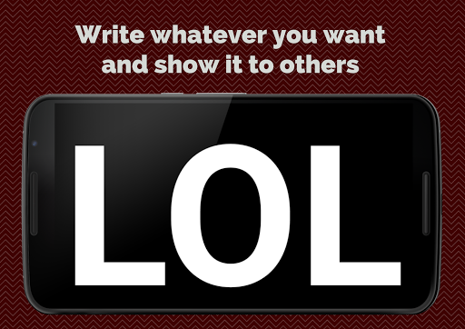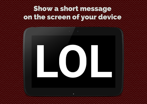 Have you ever ran into a situation in which you were unable to use verbal communication but needed to pass an information to somebody as fast as possible? Have you ever felt your gestures are not good enough to show your message? Now Screen Message app comes to help you! You can easily use your mobile device to write a short text that will show up on screen with biggest possible font size, so person you need to communicate with should read it without any problems from any reasonable distance!