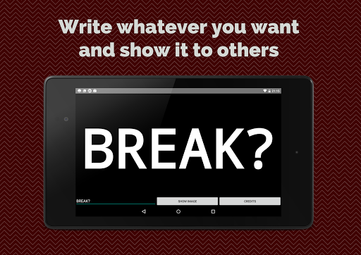 Imagine you're sitting in a bus waiting for a green light and through the window you see your friend in his car. Want to ask him if he wants to play soccer today? Just write "Soccer?" and show it to him. You're working in open space office without Internet connection and want to go for a coffee with your buddy from other side of office? Or maybe you want to tell some girl that you already fall in love with her but you're so amazed by her beauty you can't say a word? Yeah! This application is for you!