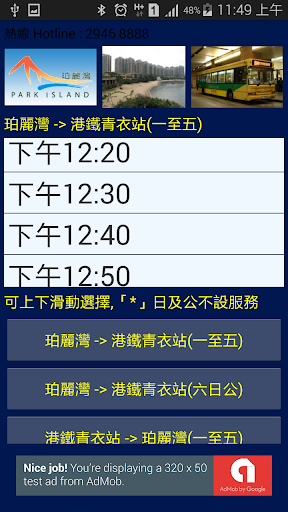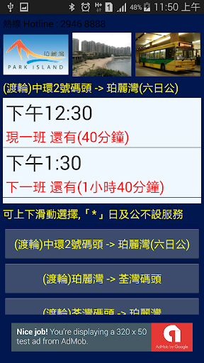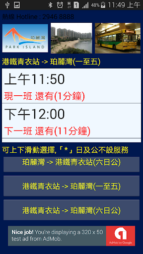 - To provide a quick way on checking shuttle bus schedule of the PI (Park Island). (by touching the bus schedule)