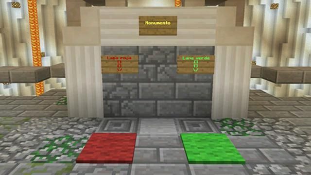 The objective is to go out on an adventure and find one red wool block and one green wool block and then return to the start of the MCPE map and place the blocks on its each assigned position.