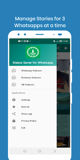 In this app, you can manage status for three different whatsapp as: