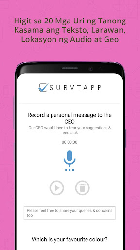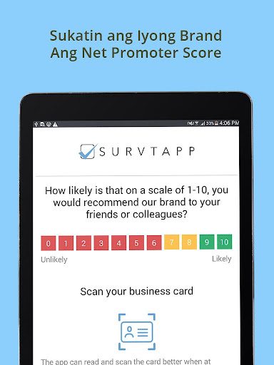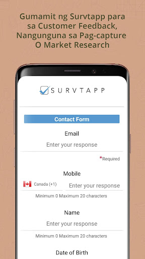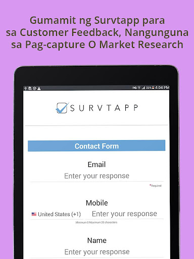 Ang Survtapp ay isang Survey App na nagpapahintulot sa iyo na makuha ang anumang uri ng data sa Mga Tablet, Mobile Phone, Touchscreen Kiosks at sa Web.