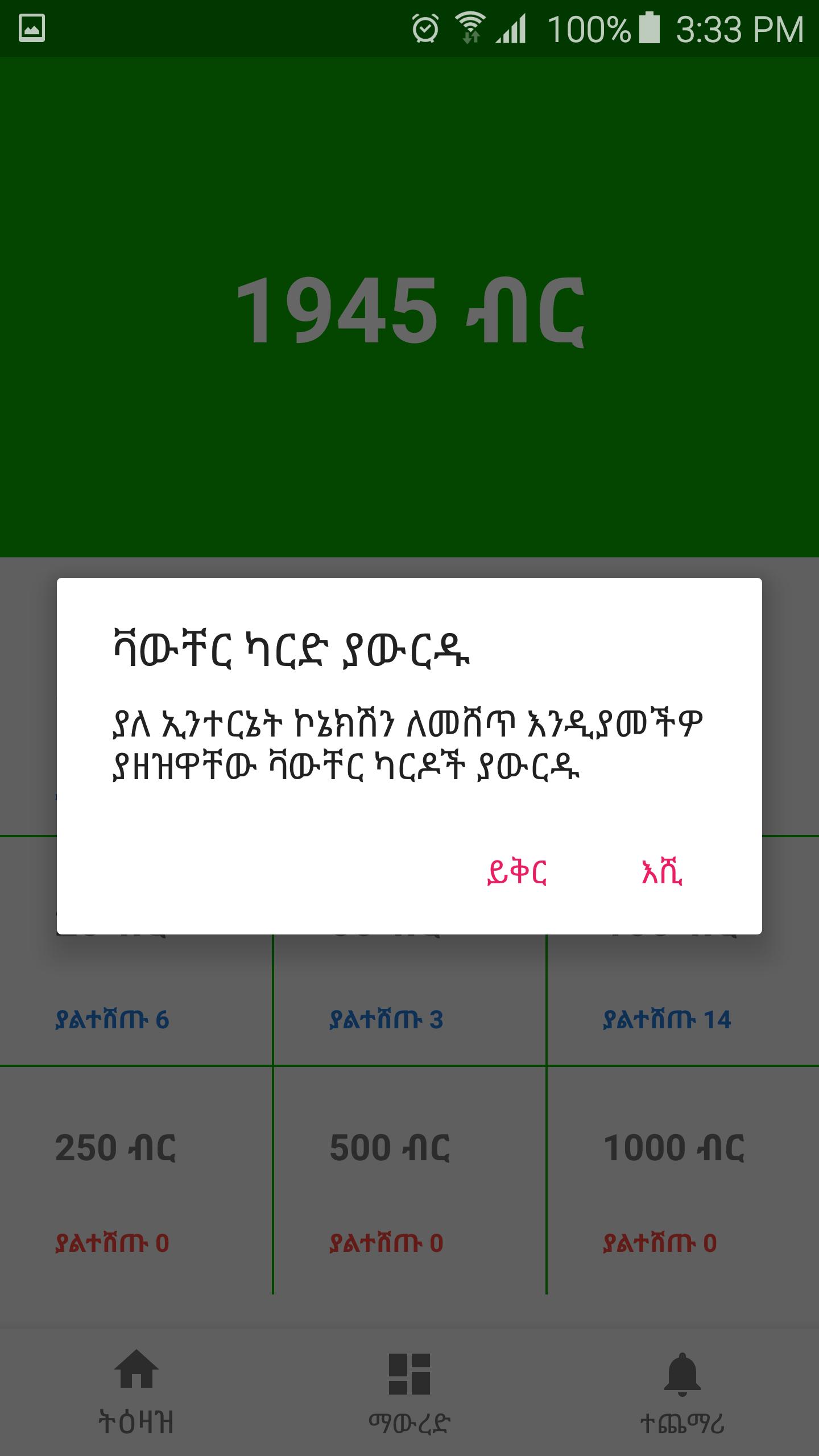 Teleport Dealer is used for selling EVD (Electronic Voucher Cards) to Ethio Telecom prepaid mobile subscribers