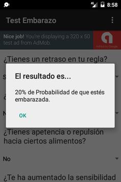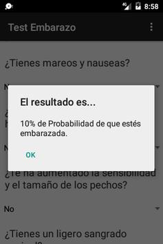 Responde a todas las preguntas y tendrás un resultado de propabilidad de tener un bebé y estar embarazada. Acude de todos modo a un médico que es el profesional que puede decirte el resultado definitivo.