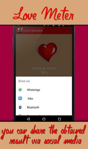 You can obtain result using love test calculator and then share it via social media sites like facebook, whatsapp, E-mail.