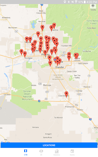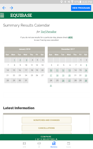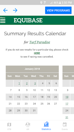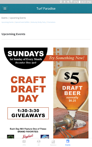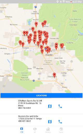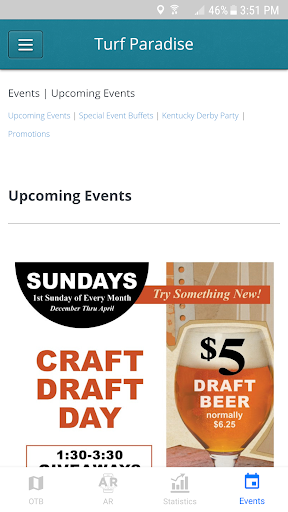 Gamit ang Turf Paradise app maaari mong mahanap ang pinakamalapit na off track pustahan lokasyon sa Arizona sa kanilang website, numero ng telepono at mga direksyon mula sa iyong lokasyon.Lumipat sa AR mode at i-scan ang Turf Paradise logo para sa isang karanasan sa augmented reality.Tapikin ang mga istatistika upang ma-access ang pinakabagong mga resulta at mga programa para sa Turf Paradise.Maaari mo ring tingnan ang mga paparating na kaganapan sa track sa tab na Mga Kaganapan.