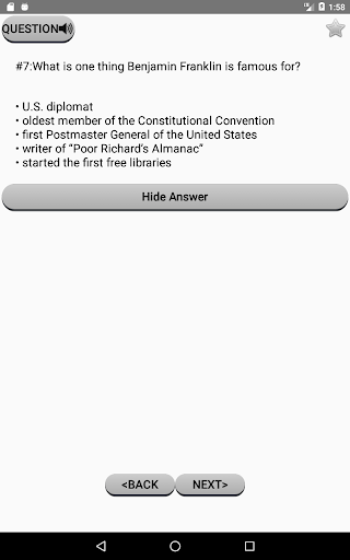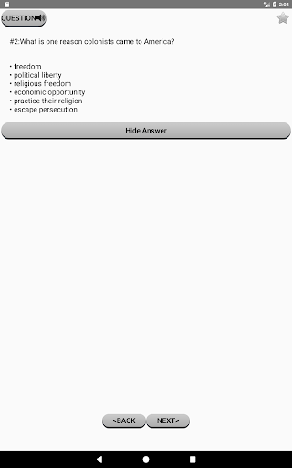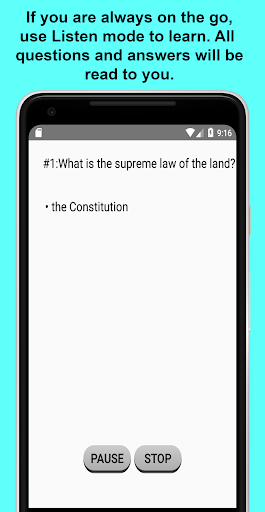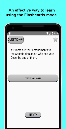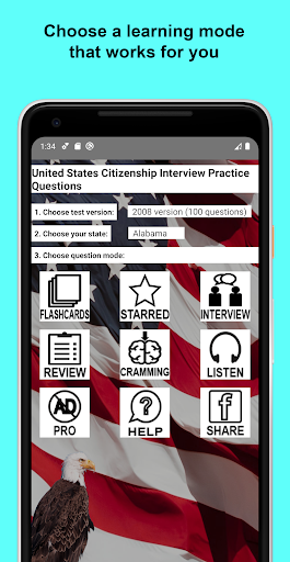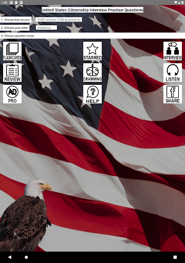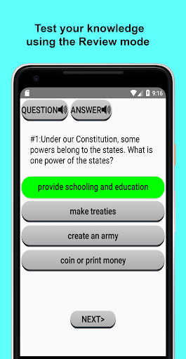 Gamit ang libreng app ng Pagsubok sa Pagsubok sa Citizenship ng Estados Unidos, madali kang maghanda para sa pangwakas na panayam sa oral sa Estados Unidos.Upang maging isang mamamayan ng Estados Unidos, kakailanganin mong sagutin ng hindi bababa sa anim sa sampung mga katanungan nang tama (para sa 100-tanong na bersyon) o labindalawang labas ng dalawampung katanungan nang tama (para sa 128-tanong na bersyon).Susubukan ng app ang iyong kaalaman sa mga sumusunod na paksa upang matiyak ang iyong pangkalahatang kahandaan: