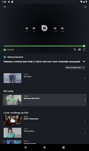 I-download ang opisyal na VRT Nu app at magpasya para sa iyong sarili kung saan at kapag tiningnan mo ang iyong pinagkakatiwalaang mga programa ng VRT: sa daan, sa bahay o sa mga kaibigan.Bukod dito, tumingin ka libre!Hanapin ang iyong mga paboritong serye o mabigla sa pamamagitan ng mga mungkahi ng isa, canvas at ketnet at titiyakin namin na ka agad sa pinakabagong mga kaganapan.Sa VRT Nuis laging primetime.Ang VRT ay nag-aalok ngayon ng pinakamahusay na ng VRT: - Sundin ang Journal Live - o tingnan sa isang malawak na hanay ng mga impormasyong programa - huwag makaligtaan ang isang segundo mula sa bahay - pakiramdam na konektado sa mga bayani ng pababa sa kalsada - makuha ang iyong inspirasyon mula sa Ang isang seleksyon ng mga pinakamahusay na dokumentaryo - mamahinga sa isang husay na halo ng Flemish at International Series - Tangkilikin ang pinakamatibay na mga video ng aming mga tatak ng radyo na sandalan, nagsisimula sa mga caster sa iyong TV at mamahinga ang mga playlist sa app.Tuklasin ang isang nakakaengganyong kasalukuyang sa video na palagi mong dalhin ang tamang kalagayan.